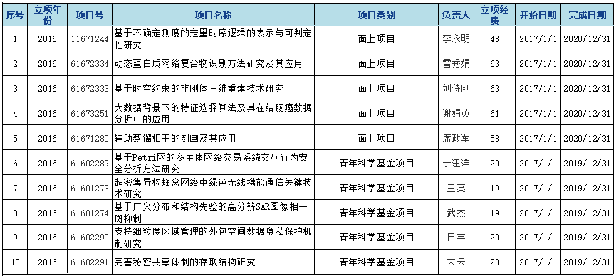 学院承担国家自然科学基金项目一览表(更新至2018年12月)