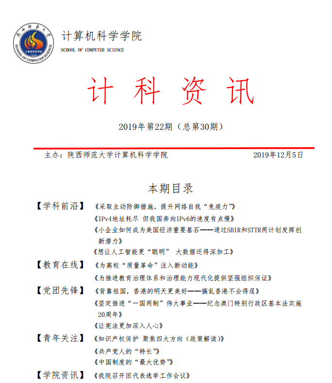 《计科资讯》是耽美小说 编辑整理的电子资讯,信息来源为《光明日报》《人民日报》《中国青年报》等权威纸媒,编辑工作由学院优秀本科生党员、团员承担。《计科资讯》主要包括学科前沿、教育在线、党团先锋、青年关注及学院资讯五个版块。学院师生可以从中了解到专业前沿和国家时政大事,欢迎大家下载阅读。