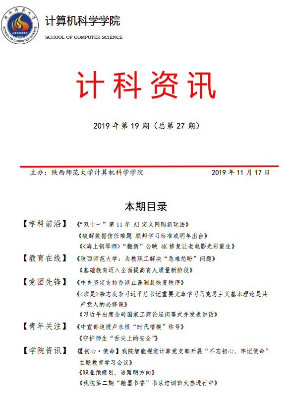 《计科资讯》是耽美小说 编辑整理的电子资讯,信息来源为《光明日报》《人民日报》《中国青年报》等权威纸媒,编辑工作由学院优秀本科生党员、团员承担。《计科资讯》主要包括学科前沿、教育在线、党团先锋、青年关注及学院资讯五个版块。学院师生可以从中了解到专业前沿和国家时政大事,欢迎大家下载阅读。