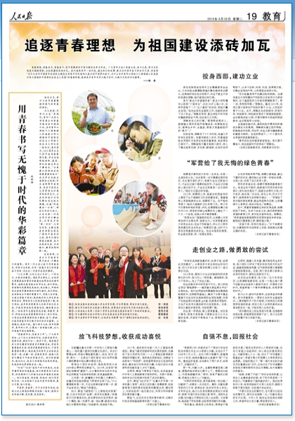 4月30日,《人民日报》在第19版“教育”板块,刊发了题为“追逐青春理想 为祖国建设添砖加瓦”的报道。文章指出,“青春理想,青春活力,青春奋斗,是中国精神和中国力量的生命力所在。广大青年正在以青春之我、奋斗之我,努力为民族复兴铺路架桥,为祖国建设添砖加瓦。”文中选取了一些代表,通过他们的故事,展示当代青年奋斗的时代气质,回答好“为什么当代中国青年运动的主题是为实现中华民族伟大复兴的中国梦而奋斗,为什么当代青年必须把个人理想融入民族复兴伟大理想和中国特色社会主义思想”的重要命题,鼓励更多青年书写无愧于时代、无愧于历史的华彩篇章。其中,以“放飞科技梦想,收获成功喜悦”为题,对耽美小说