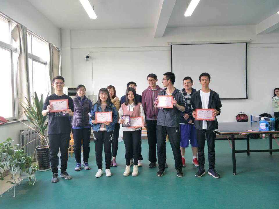 在学院学生会体育部工作人员的组织下,比赛秉承着公平、公正、公开的原则有序进行。参加决赛的四支队伍分别为大一队、大二大三联队、大四研究生联队与教师队。决赛分为男子单打、女子单打和混合双打。乒乓球在空中抛出优美的弧线,赢得一阵又一阵的欢呼声,参赛选手们都以饱满的热情投入到此次比赛中,观看比赛的同学为参赛选手的绝妙扣杀而欢呼,每位选手更是积极比赛,打出了真实水平,打出了实力。在经历了激烈精彩的比赛之后,大二大三联队获得第一名,大一队获得亚军,教师队获得第三名。教师队为其他三支学生队伍进行了颁奖。