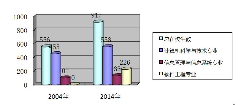 本科生规模持续扩大。在校生从2004年的556人增加到2014 年的917人,增幅65%。