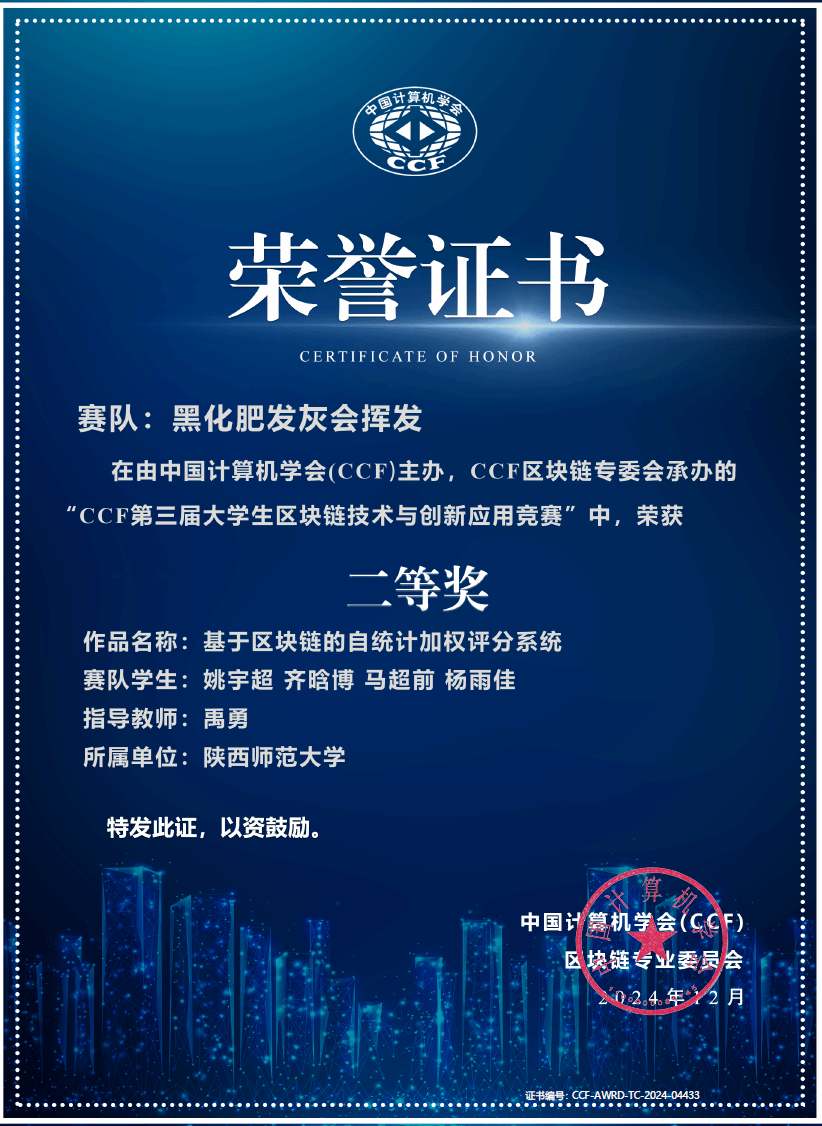 CCF区块链技术与创新应用竞赛是国内区块链领域的重要赛事,旨在推动区块链技术的创新与应用,培养具有创新精神和实践能力的高素质人才。此次获奖不仅是对耽美小说