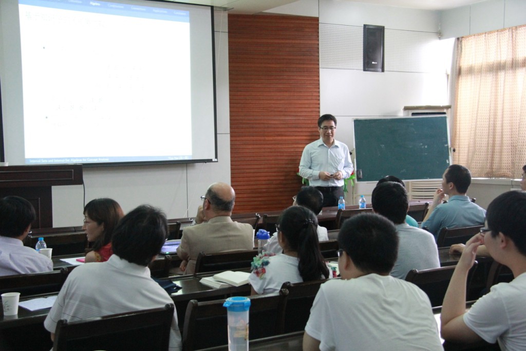 Yiyu Yao教授首先向我们做了题为《Interval Sets and Interval-Set Algebras for Concept Analysis》的报告。Yao教授首先介绍了区间集及区间集代数的有关概念以及其在相关领域的应用。接着以此为基础详细阐述了区间集及区间集代数方面新的结论。最后针对基于包含序和信息序的区间集代数方面有关的研究做了总结。