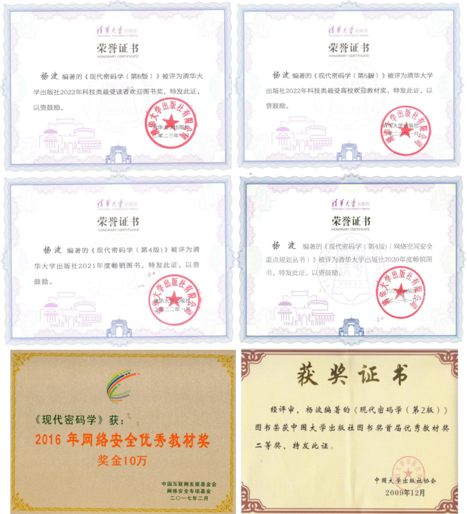 杨波教授主编的《现代密码学》(第4版)荣获省级高等教育优秀教材奖一等奖。