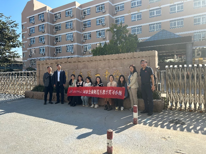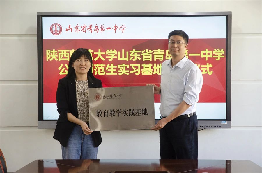 实习生和实习带队教师周彦伟,同时与青岛五所中学举行挂牌仪式与座谈会议。