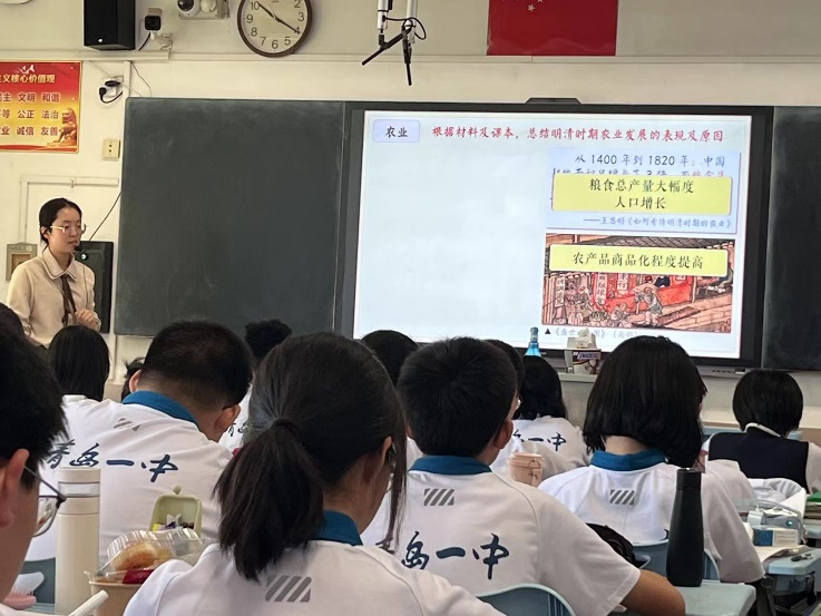 实习生桑坤宁的现场历史课堂教学,对于桑坤宁同学用心打磨的教案、精心设计的教学环节以及精彩纷呈的讲授,四位老师赞不绝口。李鹏副院长勉励同学们主动完成学生角色到教师角色的转变,在实践中发现问题,解决问题。