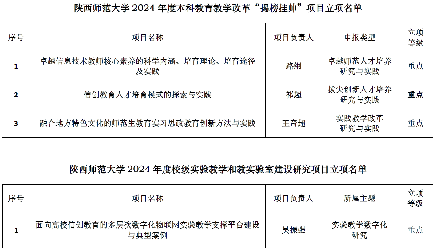 根据《关于做好2024年度本科教育教学改革研究“揭榜挂帅”项目申报工作的通知》《关于推荐申报教育部实验教学和教学实验室建设研究项目的通知》相关要求,经项目组申报、学院推荐、教务处资格审核、专家组评审等程序,耽美小说 获批立项校级“揭榜挂帅”教学改革项目3项,其中卓越师范人才培养研究与实践项目1项,拔尖创新人才培养研究与实践项目1项,实践教学改革研究与实践项目1项;获批校级实验教学和教学实验室建设研究项目1项。
