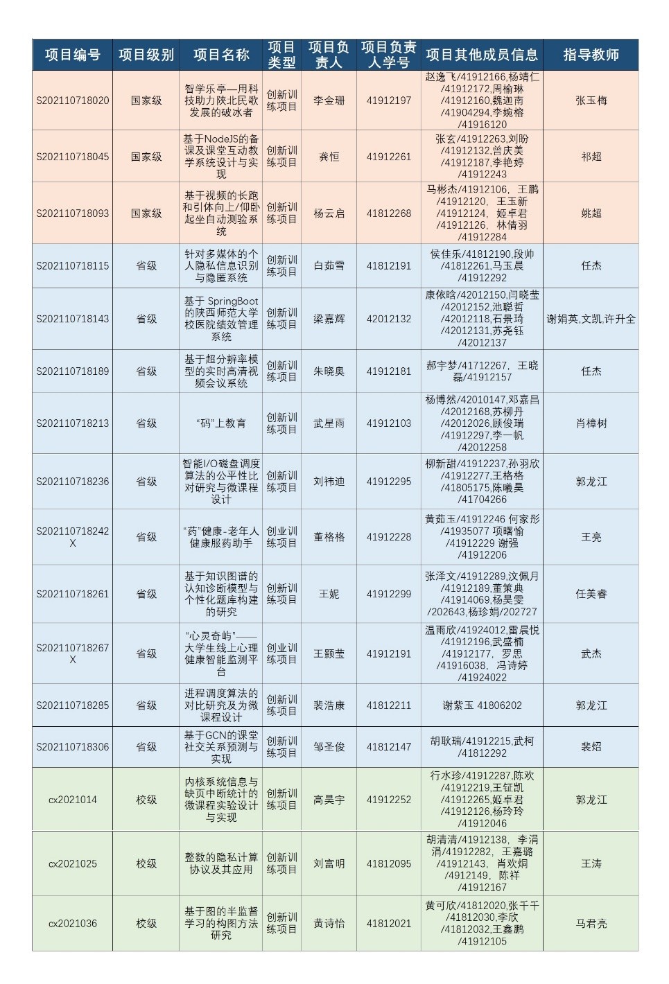 经过教务处组织评审,2021年“大学生创新创业训练计划”项目立项结果于近日公布,耽美小说 共获批立项16项,其中国家级立项3项,省级立项10项,校级立项3项。名单如下: