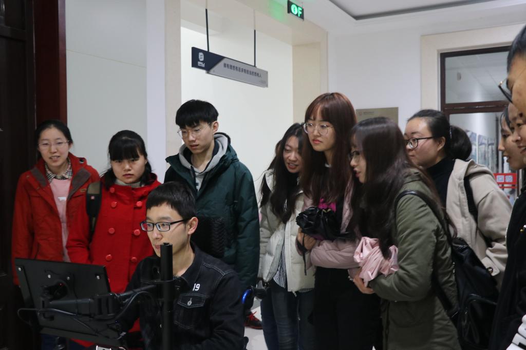 的师生在西电人工智能学院各位老师及博士研究生的带领下,对人工智能学院进行了分组参观交流,参观了智能视频分析与识别实验室,体验了“颜值魔镜”、“裸眼3D”、“五子棋自动对弈机器人”、“渐冻人智能轮椅辅助系统”等基于人工智能技术的研发成果等。在活动中,同学们对人工智能在现实生活中的应用表现出了极大的兴趣和热情,纷纷表示通过本次访学交流活动受益颇多,立志于从事人工智能领域的研究。