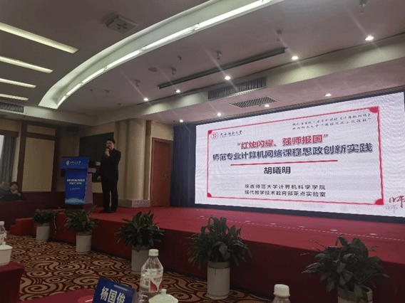 胡曦明、刘博两位老师主持申报的教学案例分别荣获特等奖和二等奖。胡曦明老师受邀在论坛上作题为“‘红烛闪耀、强师报国’——师范专业计算机网络课程思政创新实践”的报告,该案例由年会主办方制作成展板面向参会代表进行宣传和推广。