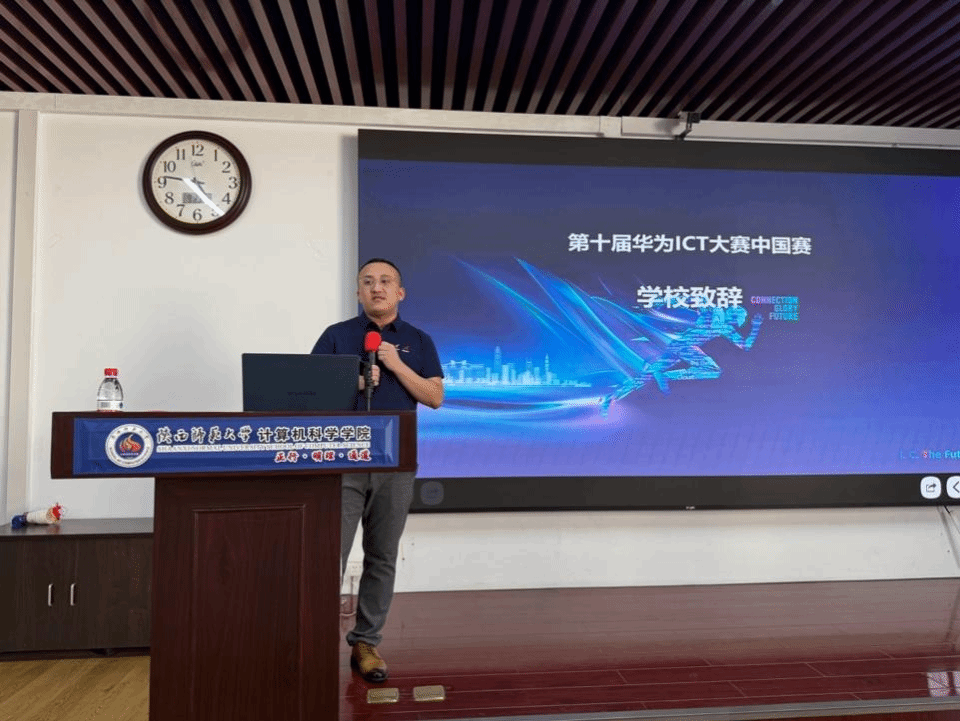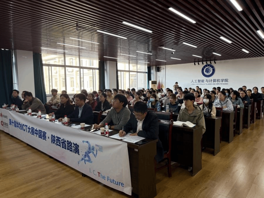 华为ICT大赛路演宣讲会在长安校区文津楼学院报告厅隆重举行。人工智能与计算机学院院长姚若侠、副院长李鹏、2024级辅导员刘中央、张皓然以及学院竞赛负责人王涛老师出席会议。华为陕西人才发展总监谷羽新、华为陕西人才发展经理付皓焱、华为陕西鲲鹏昇腾高校生态经理陈佳俊、泰克教育市场经理王瑶瑶、泰克教育西北教学总监侯向东等企业代表共同出席。部分2024级本科生及后续拟参赛的学生们参加了宣讲会。会议由王涛老师主持。