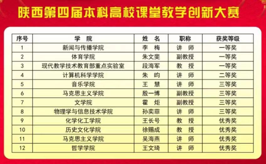 近日,陕西省教育厅公布了第四届陕西高校课堂教学创新大赛(本科)获奖教师名单。耽美小说
