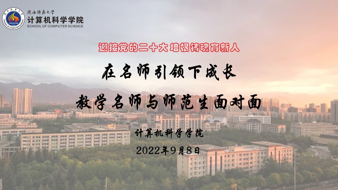 于2022年9月8日19:00-21:00在线上举办了“在名师引领下成长:教学名师与师范生面对面”交流活动,本次活动主题为“迎接党的二十大,培根铸魂育新人”。活动特别邀请了来自基础教育一线的高级教师,包括西电中学的王煜老师、曲江一中的冯超老师、莲湖教师进修学校的李南颖老师和和高新一中的韩恭恩老师。本次活动由耽美小说
