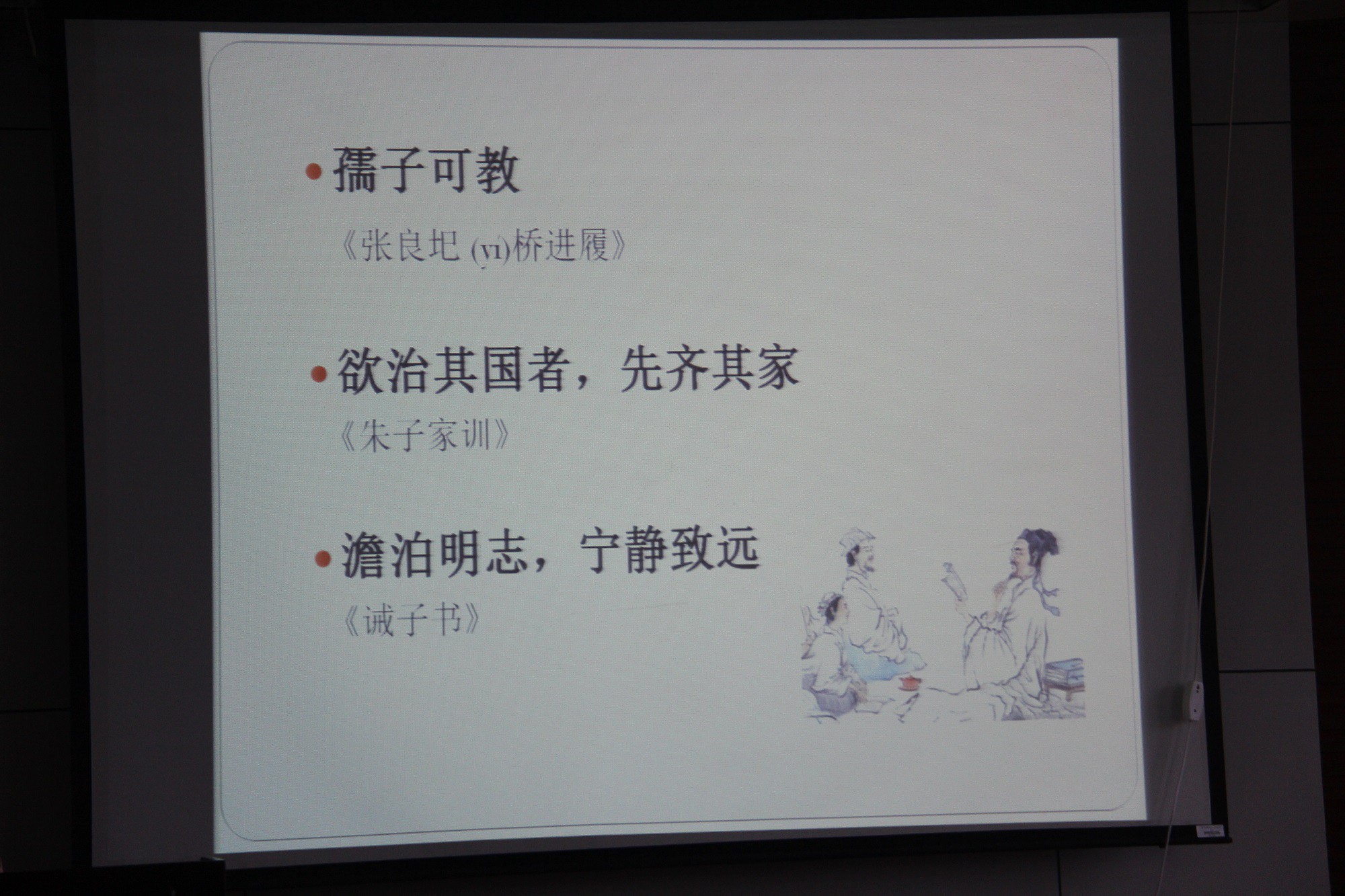 雷秀娟教授为2014级研究生新生上了第一堂入学教育课。雷秀娟教授的讲座总共分为:孺子可教、欲治其国者,先齐其家、淡泊明志,宁静致远三个部分。
