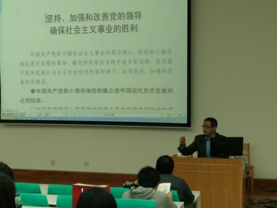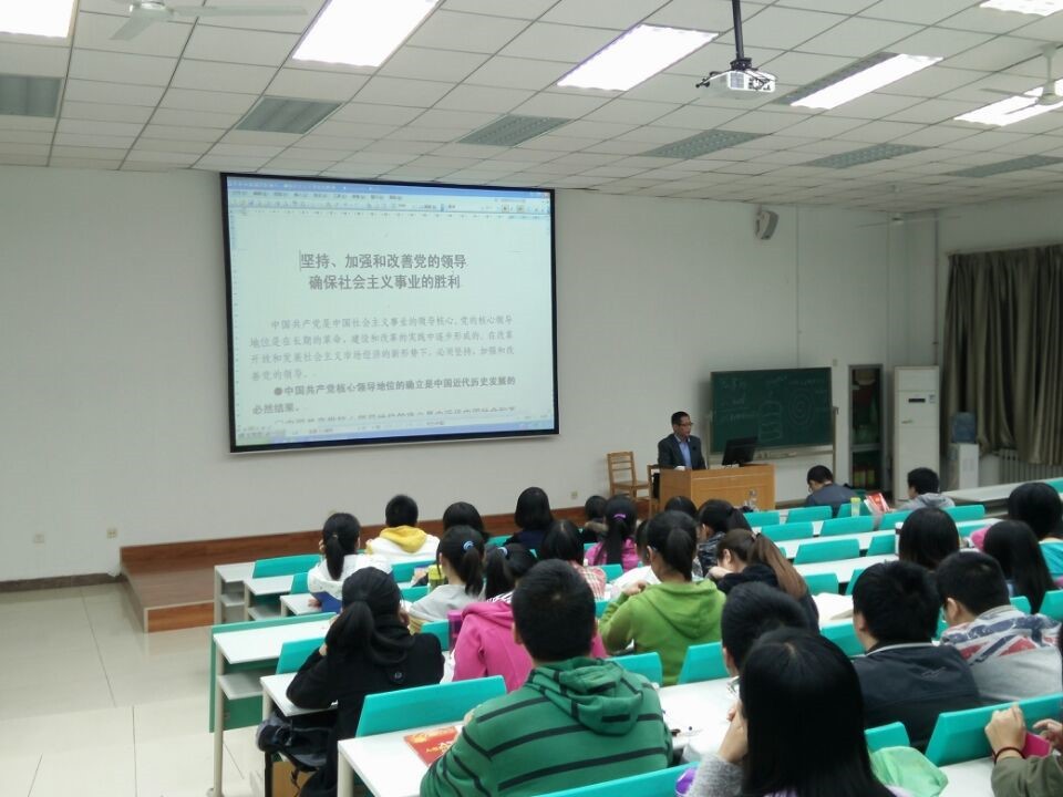党委学工部部长、学生处处长刘建军老师作了以“坚持、加强和改善党的领导,确保社会主义事业的胜利”为主题的精彩报告。九十余名学员到场参加了此次报告。