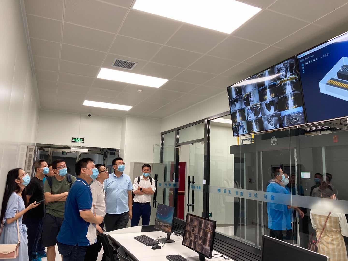 在云计算数据中心和高新数据中心机房参观过程中,同志们对数据中心的建设及运行情况,尤其是动环监控、配电UPS、精密空调、冷通道、机柜等技术细节与公司技术人员进行深入交流和探讨。