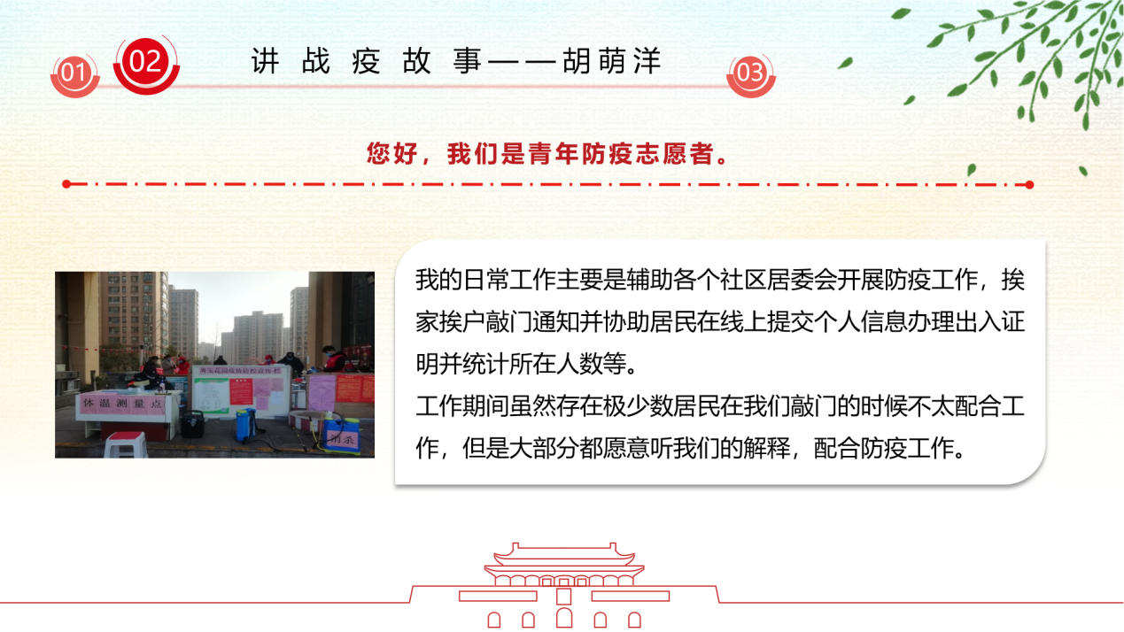 在“讲战疫故事”环节,支部党员胡萌洋、杨美以及积极分子代表宋海林分别围绕疫情期间参与社区一线疫情防控志愿服务、协助处理学院工作、为医护人员子女线上义务辅导等进行分享,三位同志从自己的抗疫故事出发,结合疫情期间所见所闻所思所感,立足自身说故事,真情实感讲体会。