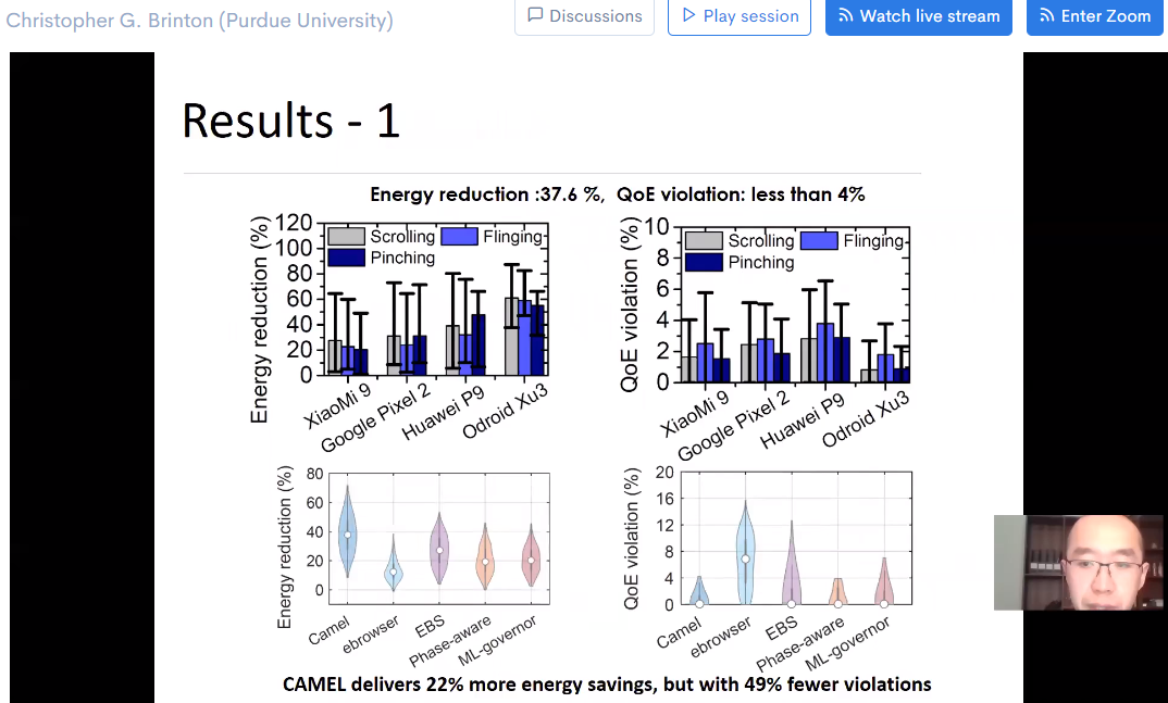 该研究成果针对移动互联网中服务响应延迟和移动设备能耗之间的平衡问题开展探索,将用户体验(QoE)引入移动互联网的Web 服务能效优化研究中,研发了面向移动用户的数据采集和智能分析系统,通过定性和定量相结合的方式深入揭示了移动用户的交互特征及心理期望规律,提出了基于神经网络的用户QoE指标预测方法,建立了用户体验敏感的计算资源最优配置预测模型和跨平台模型迁移策略,实现了移动设备的计算资源智能实时优化配置,从而在满足用户QoE期望的同时极大的降低了移动Web应用的能量开销。研发的CAMEL原型系统在小米9(骁龙855)、华为P9(麒麟955)、谷歌Pixel 2(骁龙835)和 Odroid Xu3(Exynos 5422) 四个典型的异构多核移动平台上进行了系统性能测试与验证,相比于现有的SOTA方法,CAMEL能够使移动设备节能22%左右,采集数据量降低80%以上,用户体验满意度提高49%左右。该研究成果为降低移动Web应用能耗、延长移动设备的续航时间、提高用户体验的满意度提供了一种有效的解决方案。