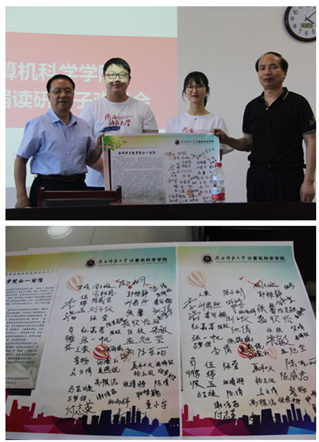会后,周子璇、陈子桐代表同学们向学院赠送了读研学子签名的《读研学子致学院的一封信》。
