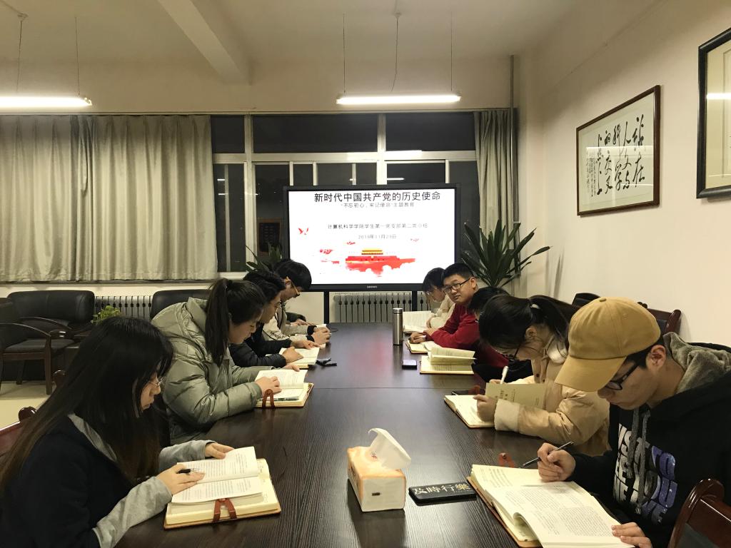此次会议以《习近平关于“不忘初心、牢记使命”论述摘编》第二部分《新时代中国共产党的历史使命》为主题展开学习和讨论,会议强调作为新时代的大学生要明确自己的历史使命,努力成为新时代中国特色社会主义事业合格的建设者和可靠的接班人。党小组每一位成员通过读原著、学原文,积极讨论,大家一致认为作为新时代青年,需要不断地提高自己的科学文化水平、积极参与国家建设、力所能及地为社会做奉献,为祖国的科技发展添砖加瓦。