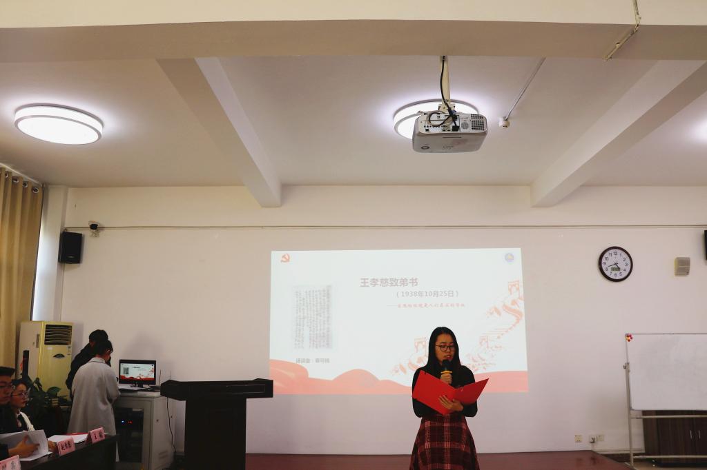 2017级计算机科学与技术专业本科生刘真诵读了王若飞致表姐夫熊铭青的家书,“一息尚存,终当努力奋斗”,对自己在监狱的生活进行了描写,抒发了内心的强大力量