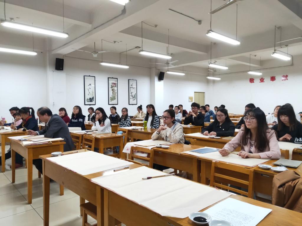 第一期“翰墨书香”书法培训班在文津楼1403正式开班。学院党委书记黄怀平、党委副书记袁冰,分团委书记郭康凌,辅导员毛庆、安琪、陈应权以及三十多名书法班学员参加了本次开班仪式。开班仪式由分团委书记郭康凌主持。