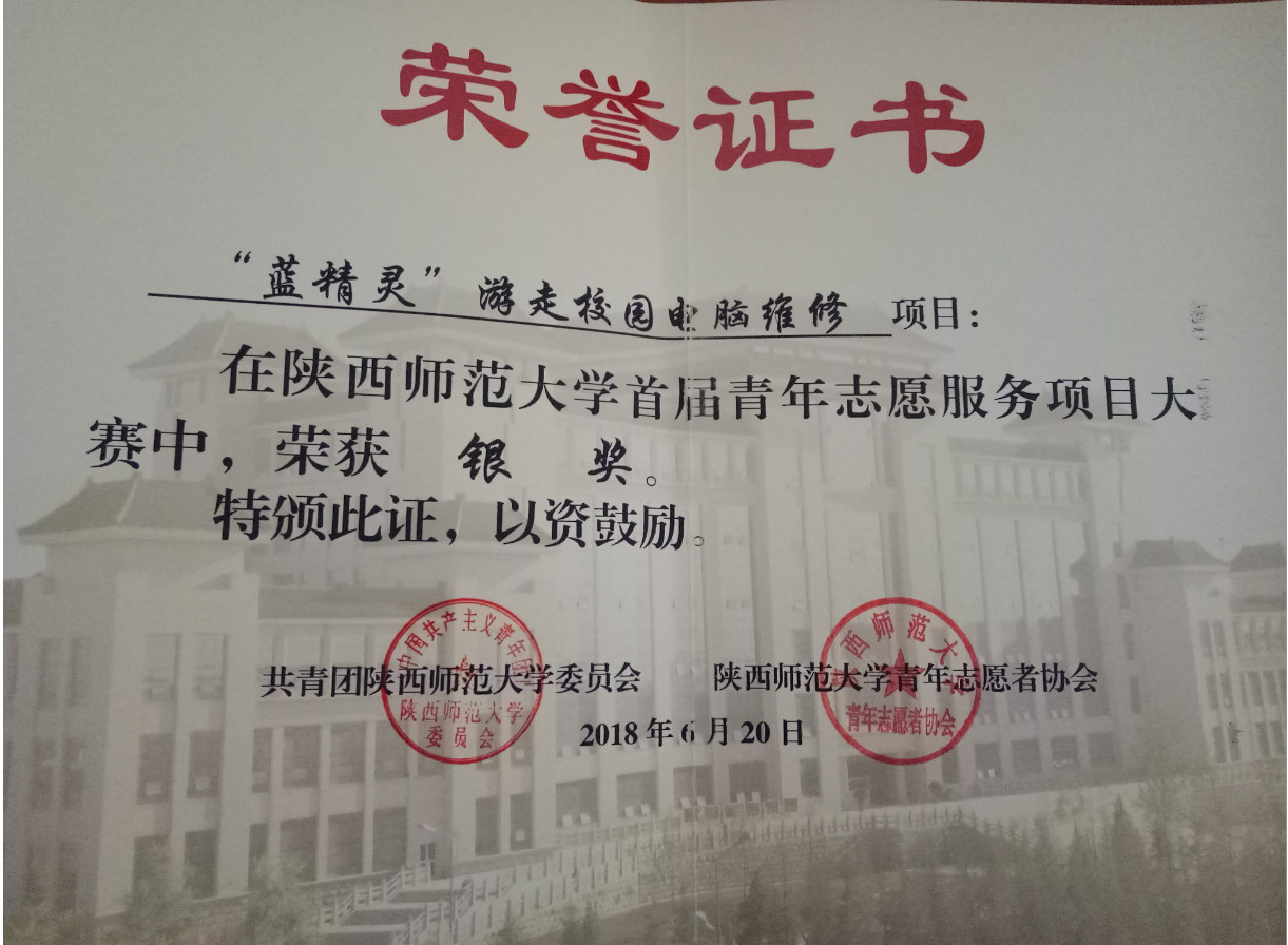 首届青年志愿服务项目大赛银奖。