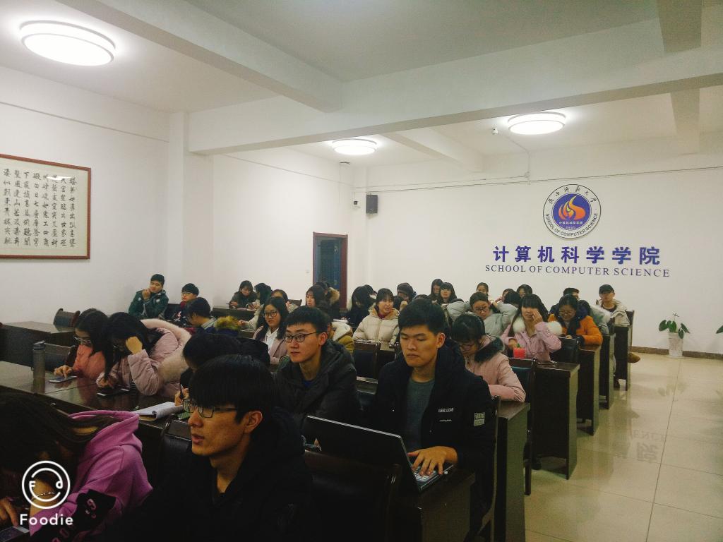 2016级计算机科学与技术(免师)一班与二班一同于学院报告厅举办了教育实习主题班会。全体学生参加了此次班会。出席此次班会的还有2015级三位优秀实习生高一华、马燕、黄娅倩和2016级计科专业班主任郝飞老师。此次班会由郝飞老师主持。