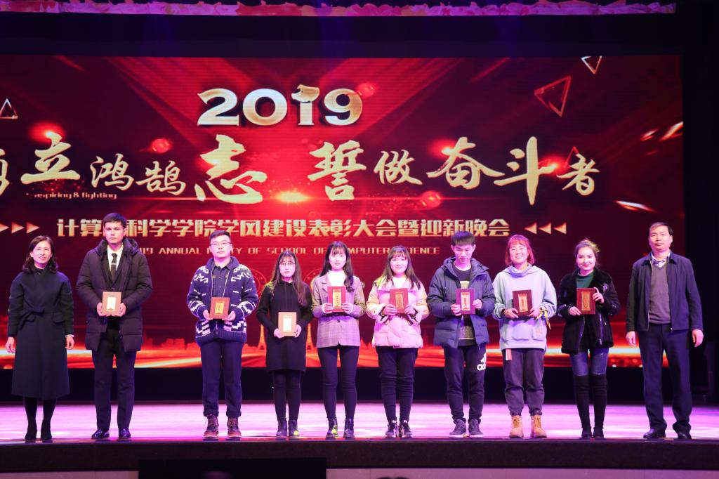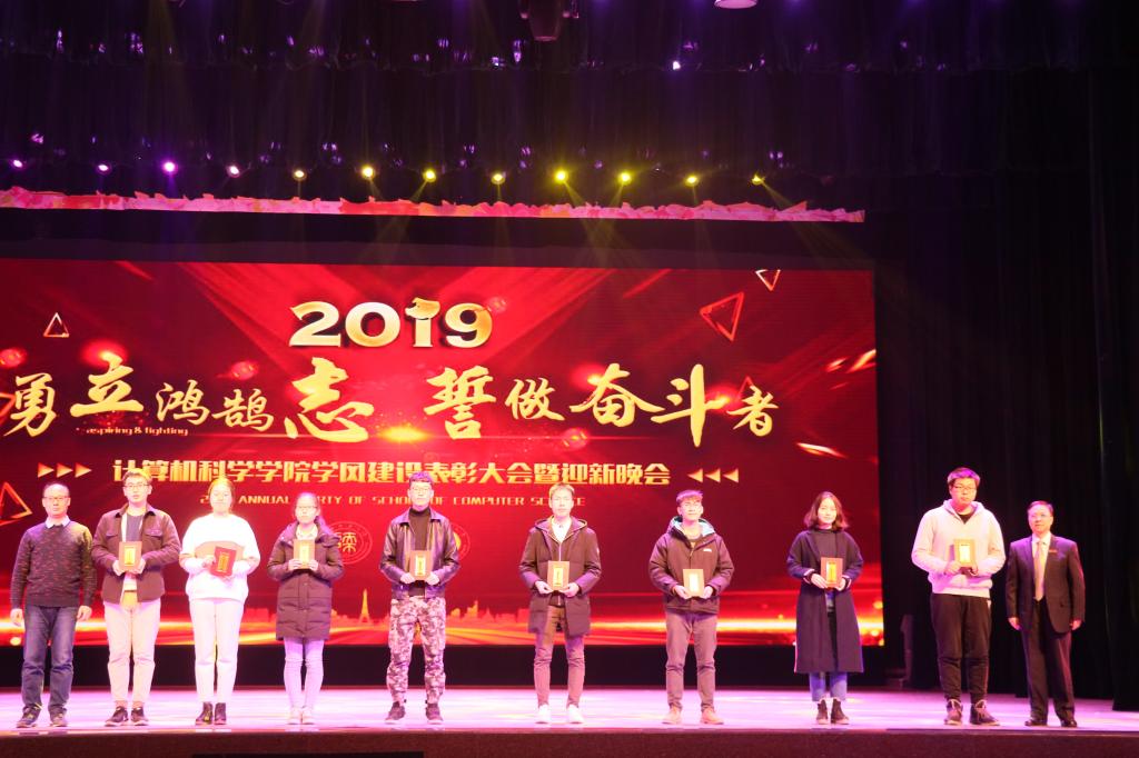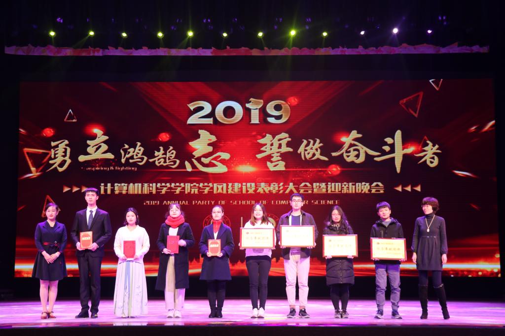 学风建设综合表彰大会表彰决定》。王小明教授、吴振强教授为黄海超、董昊等表现优秀的学术科研标兵代表颁发了证书;黄怀平老师和姚若侠教授为杨思誉、刘星霖等文艺体育标兵代表颁发了荣誉证书;袁冰老师和汪西莉教授为隋丰隆、刘佳华等表现优秀的服务奉献个人以及计算机科学与技术(创新实验班)1501班、蓝精灵志愿服务队、学院耽美小说、马列理论读书社、计算机科学协会等服务奉献团体颁发了荣誉证书与奖牌;董春生老师和毛庆老师为计算机科学与技术(创新实验班)1501班、计算机科学与技术(创新实验班)1601班、计算机科学与技术1602班、计算机类1704班等4个优良学风示范班集体与计算机类1701班团支部、计算机科学与技术1502班团支部、软件工程1502班团支部、计算机科学与技术1702班团支部等4个优秀团支部颁发了奖牌。