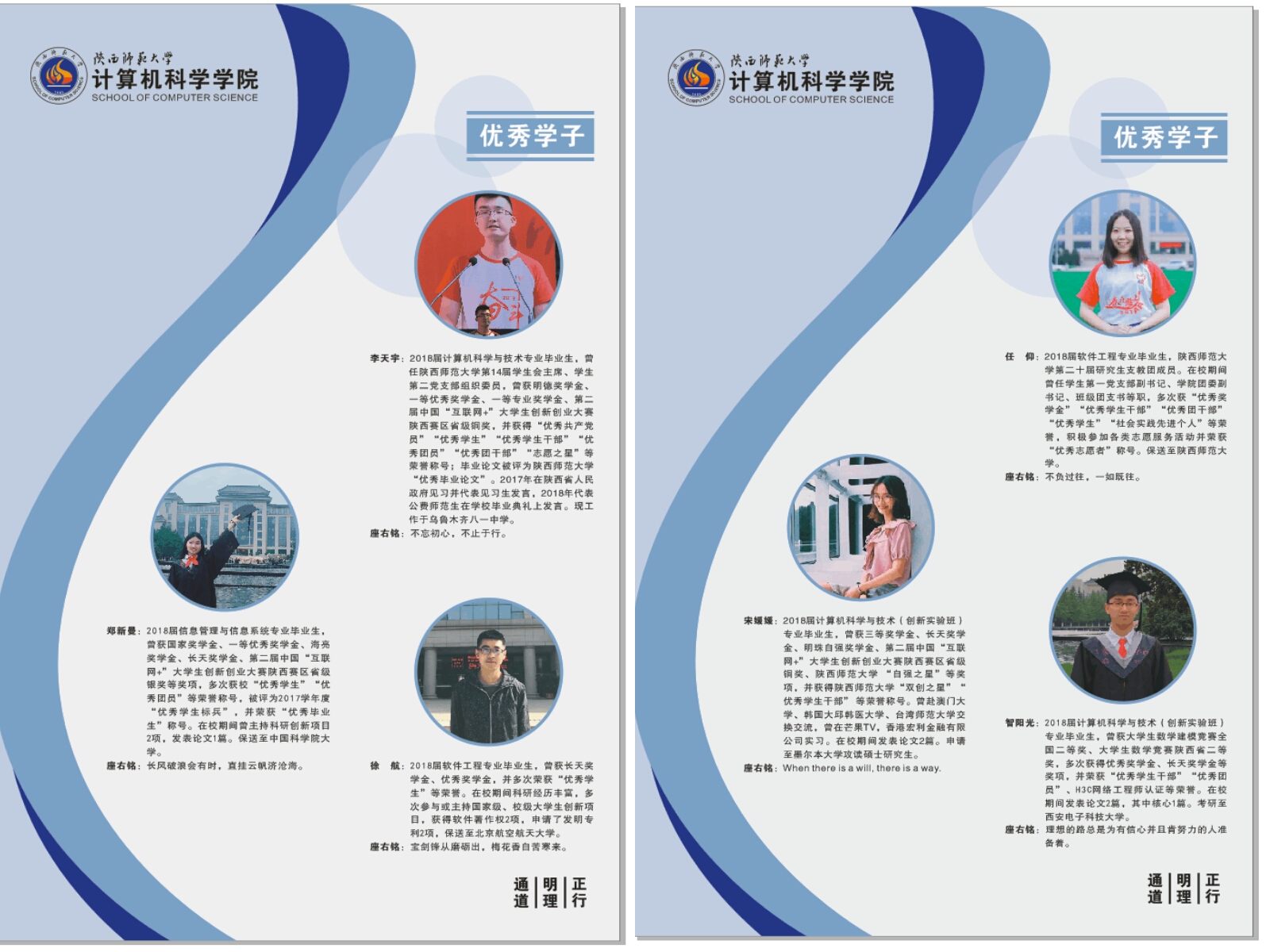 抓好院情院史教育,激发爱院荣院情怀。一是引导新生传承计科精神,尽快适应新的学习环境。在学院辅导员及志愿者组织带领下,292名新生前往学院办公区、实验室、教学区、考研自习室、文化休闲区进行了走访参观,听师长们详细介绍学院历史与专业特色,对学院历史的认识更加深刻,认同感和归属感加强。二是采用主题晚点名形式,以院情院史教育为主题,有计划、不间断地学习宣传和强化巩固学生对院训的理解,使新生对院情、院史有了更加深刻的领会、更加全面的理解,号召学生加强自律,遵守国家、学校、学院的规章制度,遵从公序良俗。三是注重以文化人、以文育人,院训石、文化墙、 “蓝精灵工作站”、计科“心语坊”、学工之窗、“致青春”留念墙、光荣榜,无一不用文化滋养着心灵、涵育着德行,为学生提供精神动力。