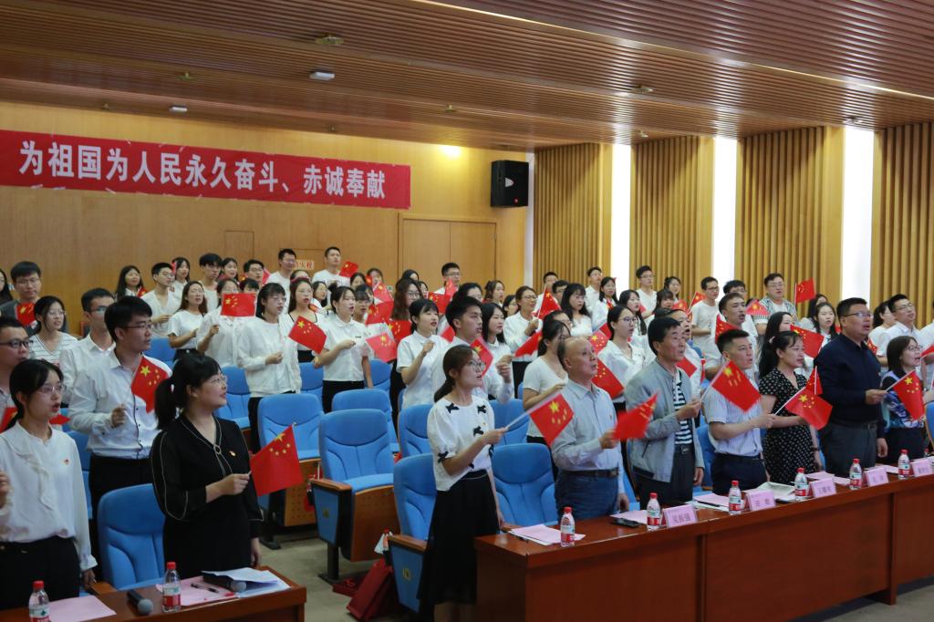 学院党委副书记袁冰宣读了毕业生党员名单,全体毕业生党员依次手持寄语与党旗合影留念,学院党委委员、学院领导为党员赠送了纪念品。大会最后,学院党委书记王耀明领学了习近平《论中国共产党历史》之《牢记初心使命,走好新时代长征路》并向全体毕业生党员寄语,鼓励毕业生党员学习长征精神,坚定革命意志。