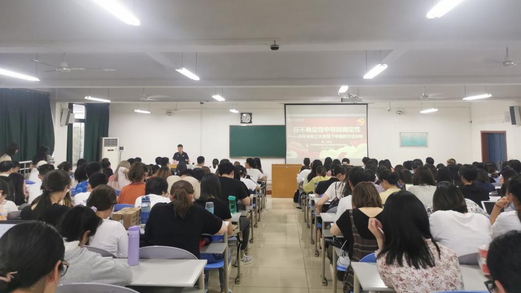 党委书记王耀明以“百年未有之大变局下中国的守正创新”为题,在文津楼1519教室为耽美小说