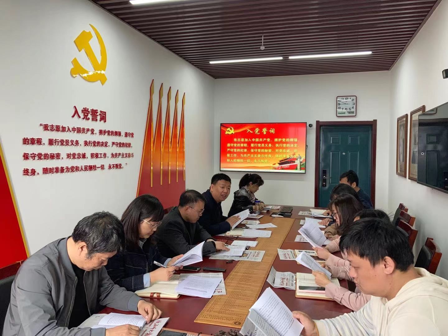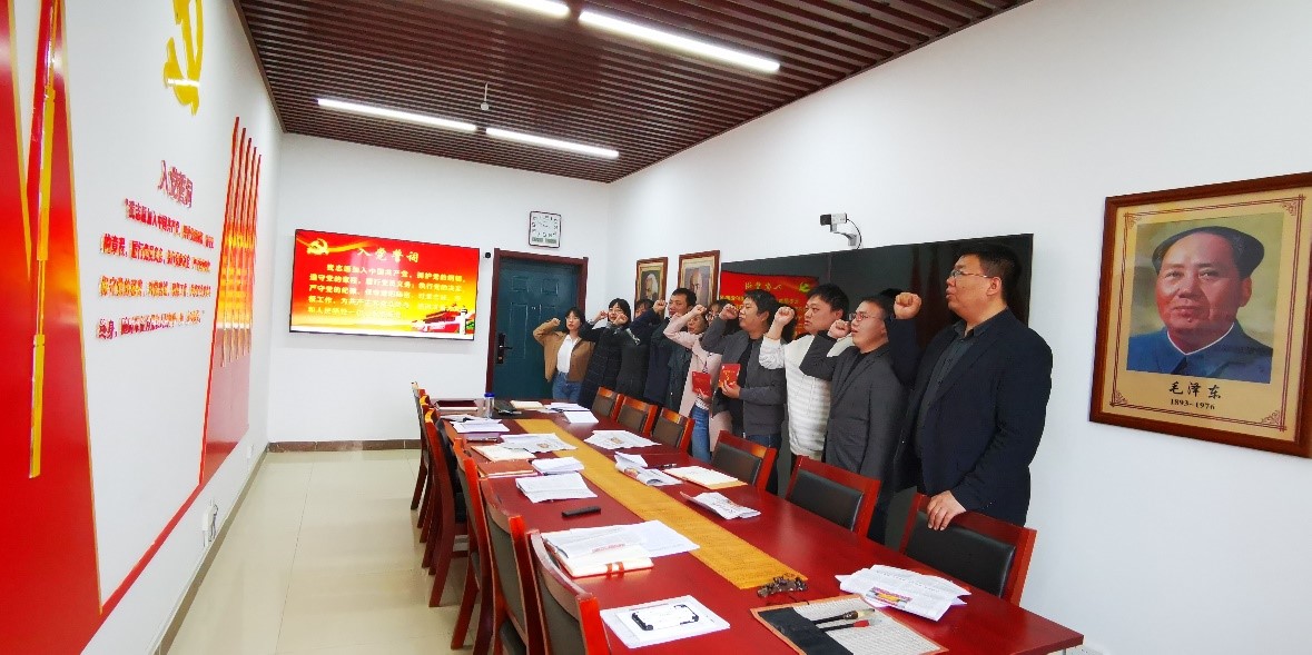 最后,支部书记为本月入党的同志们颁发党员政治生日贺卡,希望能牢记入党誓词,不忘初心,践行党的宗旨,永葆先进本色,做一名优秀共产党员,同志们以热烈的掌声表示祝贺。参会的所有同志一起庄严宣誓,重温入党誓词,坚定马克思主义信仰,坚定共产主义远大理想和中国特色社会主义共同理想。