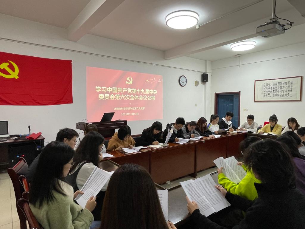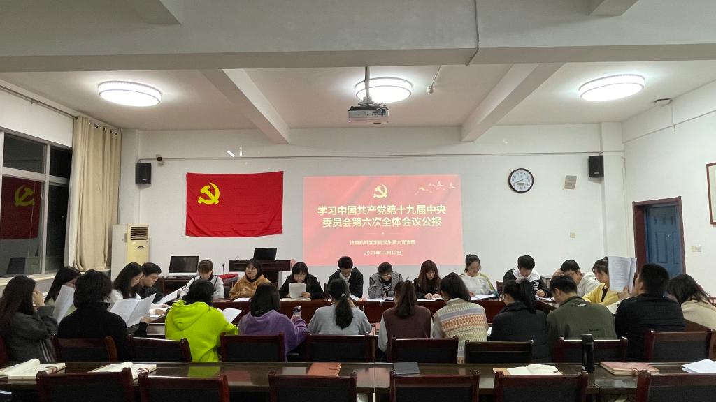 11月12日晚,学院党委副书记郭康凌组织所联系的学生第六党支部同学共同学习了大会公报,各团支部和其他党支部在课后也组织观看了视频回放。