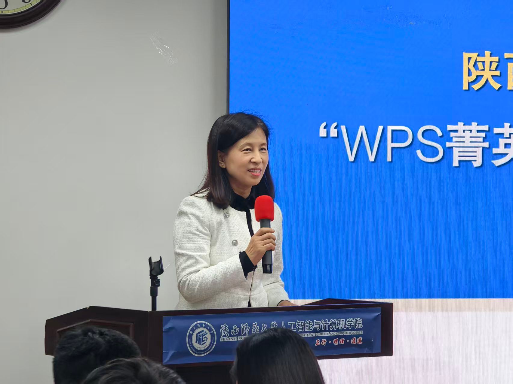 与金山办公软件有限公司合作开展的“金山办公实践学习项目”正式开课,课程动员会在文津楼3425报告厅开展。金山办公研发培训院副总监、C++课程教学负责人叶鹏飞,金山办公招聘经理、校招负责人彭泽敏,学院院长姚若侠,副院长李鹏、任杰,党委副书记郭康凌,教师代表马君亮,团委书记何文曦,辅导员袁珂月、梁星宇,学院2027届本科生、研究生约90人参加本次项目动员会并进行首场授课。动员会由李鹏副院长主持。
