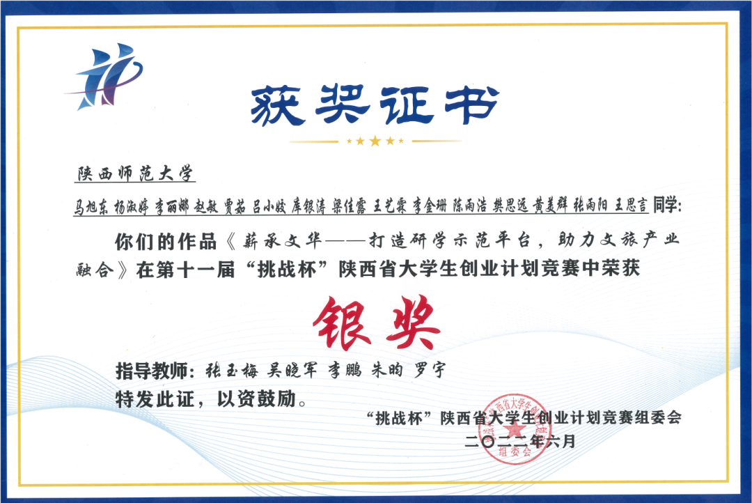 选送项目《薪承文华——打造研学示范平台,助力文旅产业融合》荣获省赛银奖。