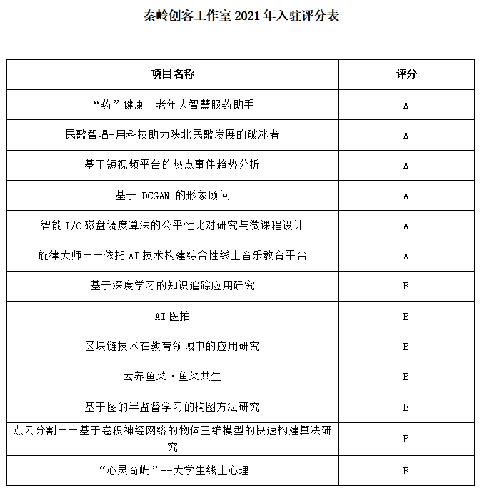 耽美小说 于6月23日组织了2021年度秦岭创客工作室入驻项目遴选推荐工作。通过项目组申报答辩、院内专家评审等程序,共遴选出13个项目入驻创客工作室,A类项目6项(入驻文津楼3624),B类项目7项(入驻文津楼4楼创客坊),现将拟推荐项目名单予以公示(详见附表)。推荐项目将于7月5日起入驻秦岭创客工作室,并按照《秦岭创客工作室》入驻指南进行项目培育。