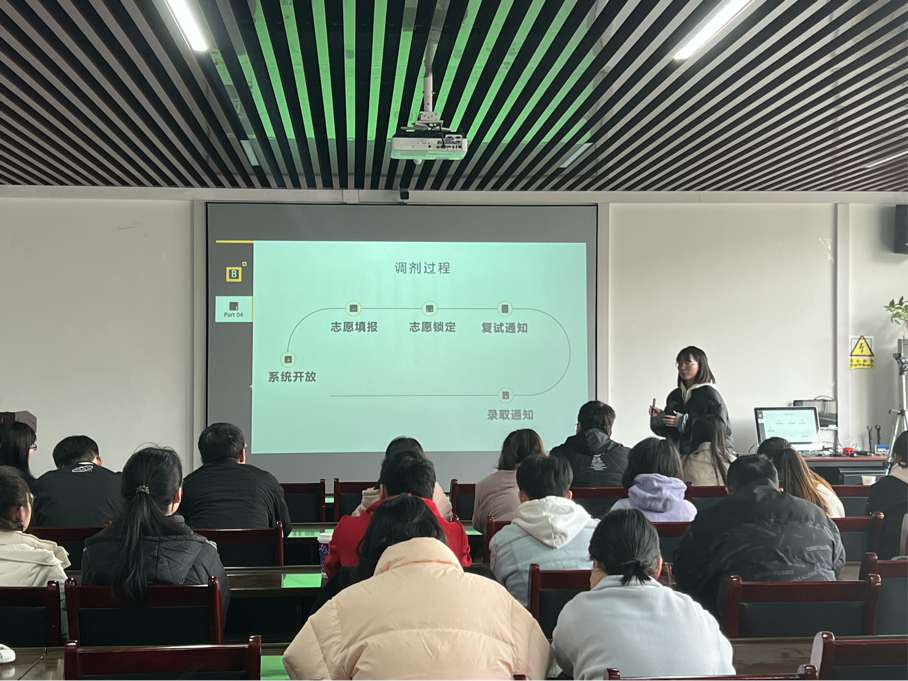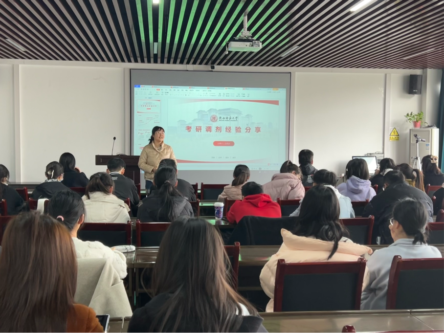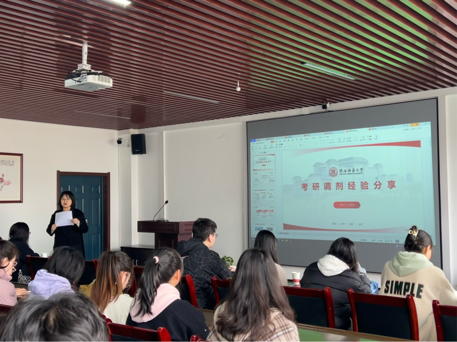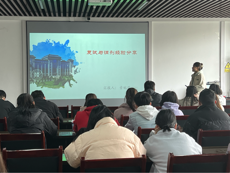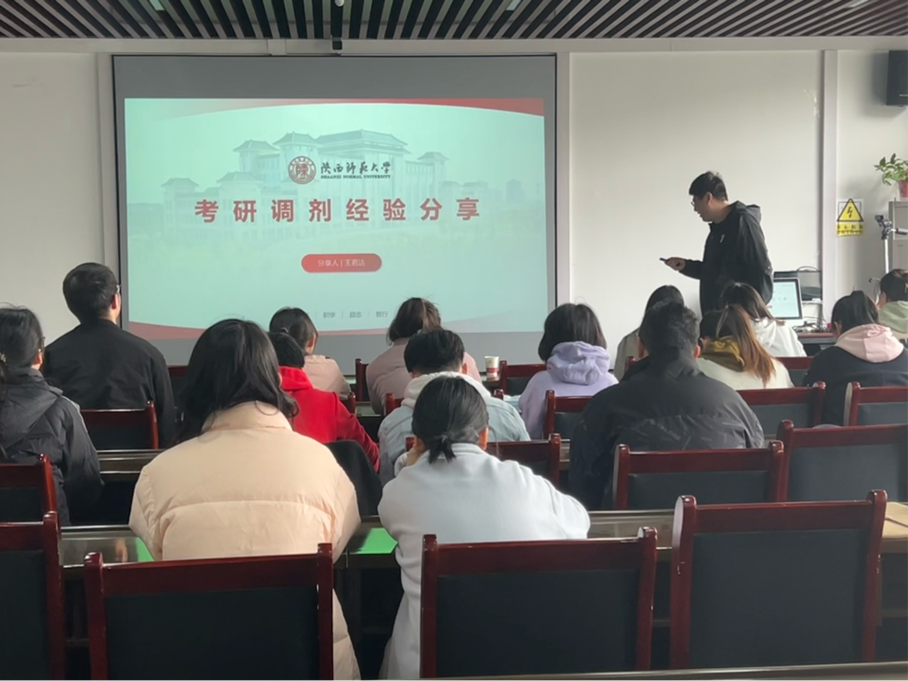 、西北大学、陕西科技大学等5位相关专业的往届在读研究生校友,给即将参加考研复试和调剂的2023届学子分享复试及调剂经验。学院党委副书记郭康凌、2019级班主任陈昱莅、2019级辅导员梁星宇以及2019级考研学子共计40余人到场听会。分享会由郭康凌主持。