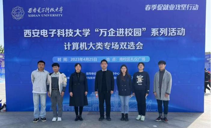 组织师生前往西安电子科技大学参加专场招聘会。学院党委副书记郭康凌、人工智能专业负责人武杰副教授、研究生辅导员袁珂月带队,部分2023届毕业生及学院2024届本科生、研究生就业大使前往参会。