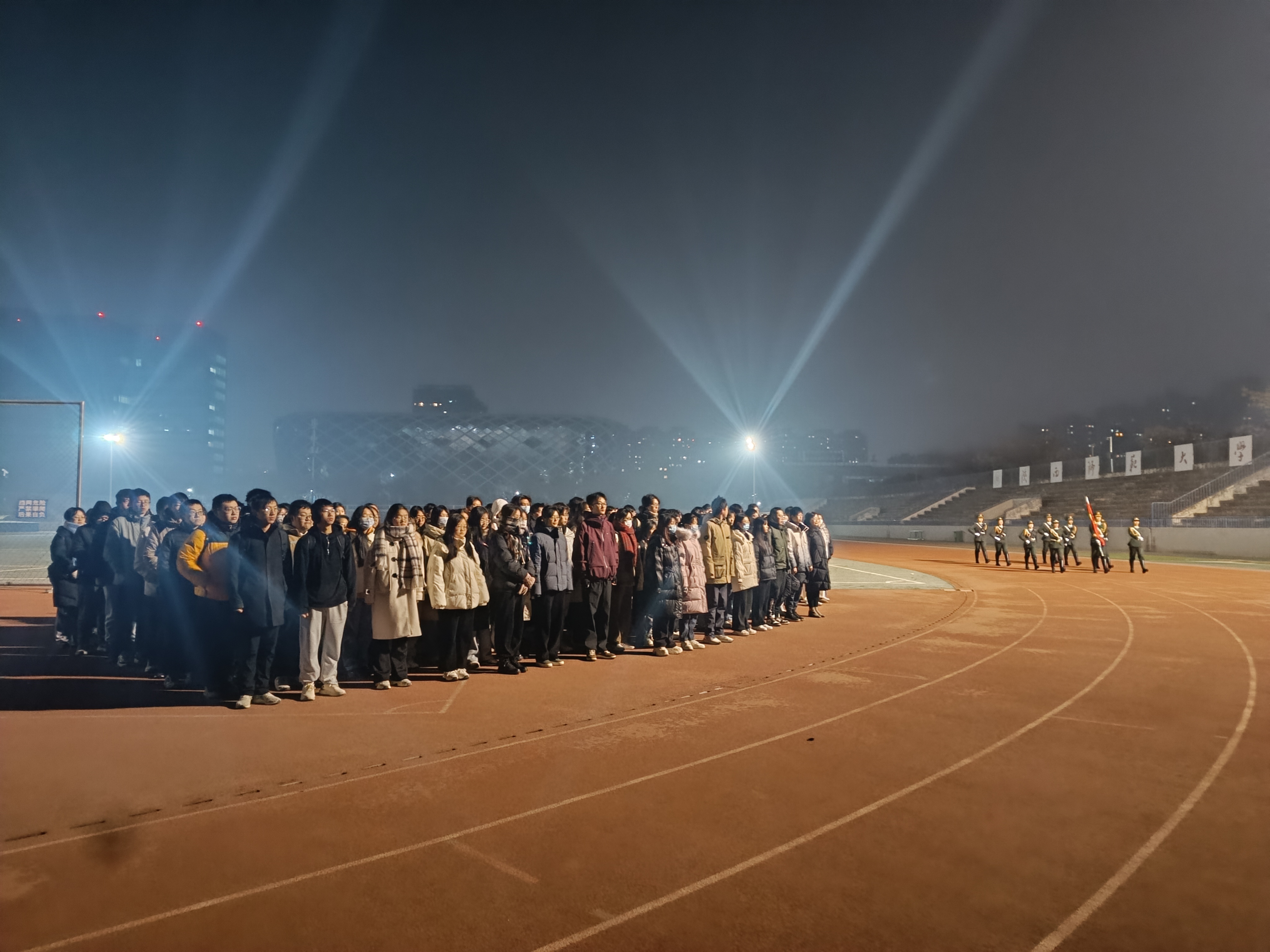 组织2022级本科生在长安校区田径场进行升国旗仪式。学院党委副书记郭康凌、2022级全体本科生参加,辅导员田海东主持活动。