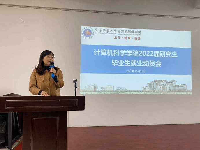于10月11日下午在文津楼3412教室举办了2022届研究生毕业生就业动员大会。学院党委副书记郭康凌及2022届全体研究生参加动员会,动员会由研究生辅导员蒋江红主持。