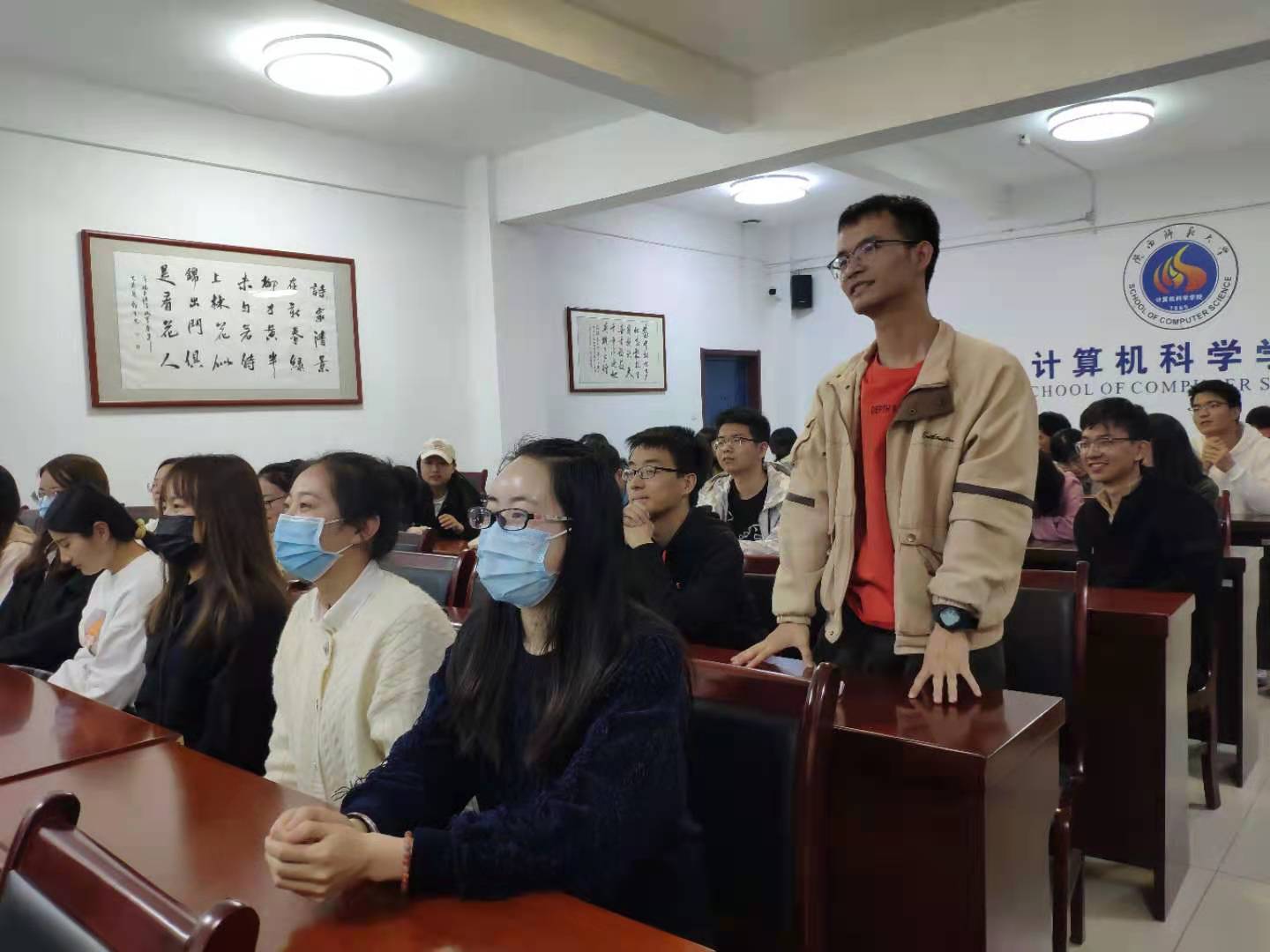 发展历史悠久,自建设以来发展迅速,为能成为一名光荣的师大计科人而骄傲。第二个环节中,学生进一步学习学院院训“正行·明理·通道”、院风“计算思维,德行天下”、学风“尚学善思,博观笃行”的深刻内涵,并结合自己在计科院的学习经历分享自己对院训、院风与学风的理解与感悟。通过交流学习,每一位学生从院训、院风和学风中吸取了宝贵的精神财富。