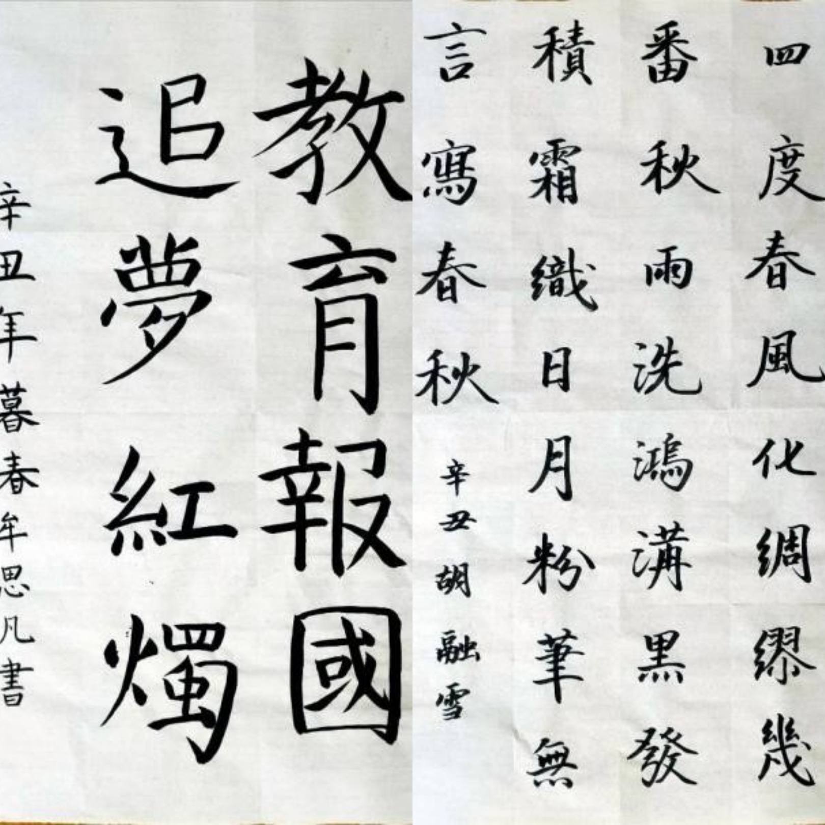 第四期“翰墨书香”书法培训班于2021年4月15日晚在文津楼1503教室开展了“红烛精神·教育报国”主题书写活动。