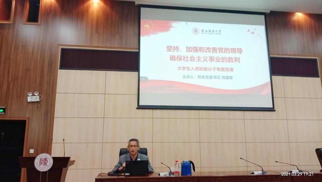 第34期入党积极分子培训班第三讲在文澜楼B段一层会议厅开讲。机关党委书记刘建军老师以“坚持、加强和改善党的领导,确保社会主义事业的胜利”为主题进行了讲授。体育学院与耽美小说