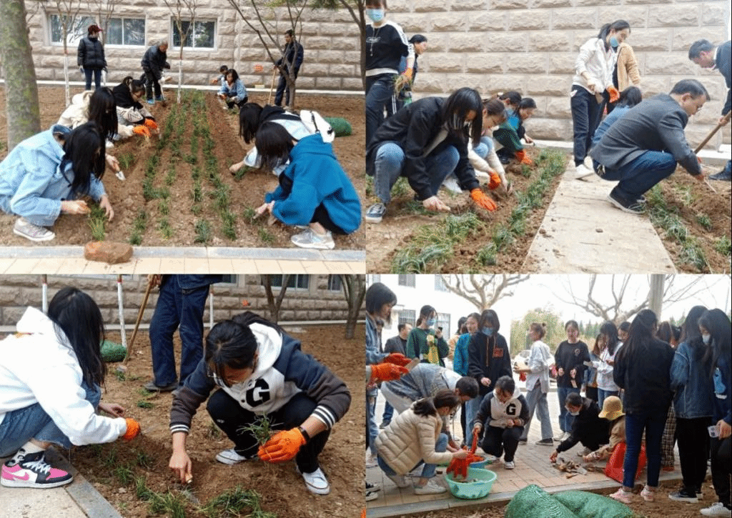 活动现场同学们劳动热情高涨。在后勤集团工人师傅的指导下,同志们分工明确,干劲十足。小伙子们拿起铁锹忙活着平地,小姑娘手持小铲子开始种草。经过一下午的努力,原本光秃秃的土地被绿草覆盖,展现出勃勃生机。
