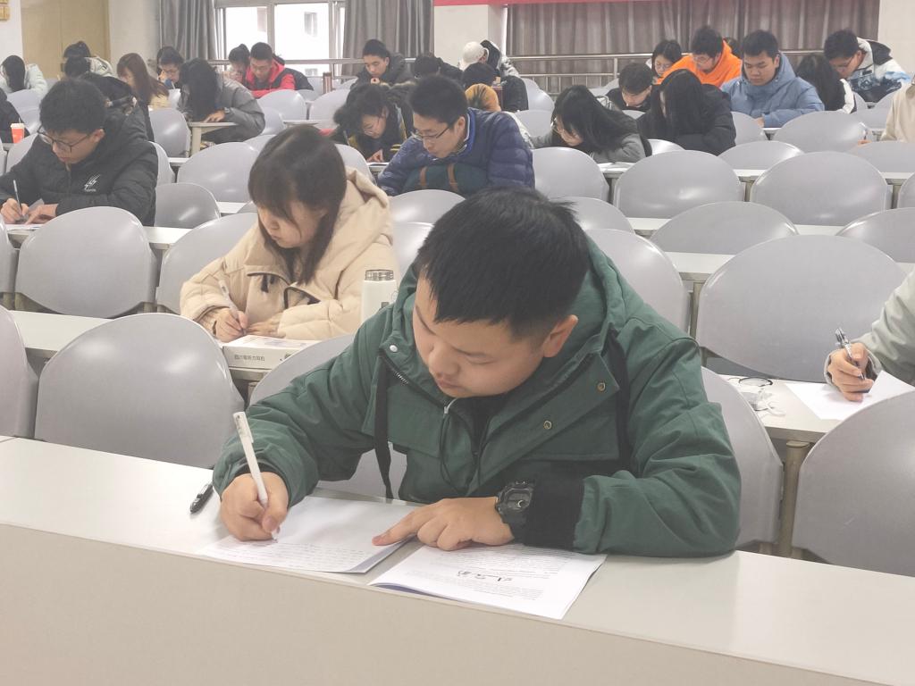 考试开始前,同学们提前10分钟进入考场,自觉将手机等与考试无关的物品置于讲台两侧,并有序入座。同时工作人员宣读考试相关规定,向参考同学介绍CET4的考试流程和注意事项。随后,工作人员按时分发试卷,正式开始本次考试。考试过程中,同学们严守考纪,态度端正,认真审题,全力以赴地参加此次考试。考试结束后,工作人员进行收卷工作,同学们有序离开考场,至此CET4模拟考试顺利结束。