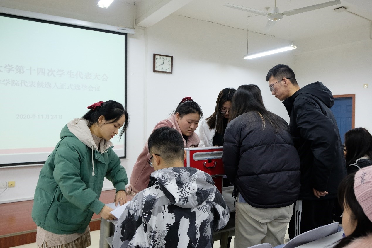 召开学生代表大会,选举出席学校第十四次学生代表大会代表。11月22日晚,学院在文津楼3424教室召开学生代表预选会议。学院党委副书记袁冰,辅导员陈应权、安琪、崔瑜璠、陈子桐及123名本科各年级学生代表参加会议。会议由学院团委书记郭康凌主持。