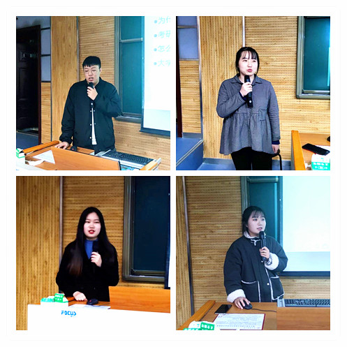 2016级学生刘星霖与同学们分享了考研的选择和准备。刘星霖同学结合自己的考研经历,从考研的自我衡量,考研的目标选择,考研前的准备三个方面为同学们未来考研指明方向。在谈及考研准备时,刘星霖同学为同学们介绍了自己大学四年的生活计划,并以此激励同学们努力学习,充实地渡过大学四年的生活。之后,耽美小说