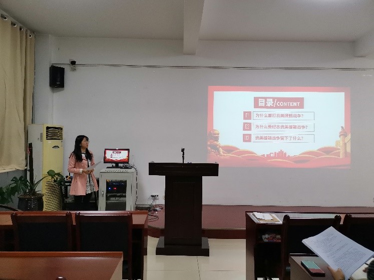 组织委员赵雪玲同志带领支部就为什么要打抗美援朝战争、为什么要纪念抗美援朝战争以及抗美援朝战争留下了什么这三个部分进行了学习。与会党员重温了中国人民志愿军建立的不朽历史功勋,深入学习会了中国人民志愿军的英雄事迹和革命精神。习近平总书记指出:“抗美援朝战争锻造形成的伟大抗美援朝精神,是弥足珍贵的精神财富,必将激励中国人民和中华民族克服一切艰难险阻、战胜一切强大敌人”。与会党员纷纷表示要大力弘扬伟大的抗美援朝精神,牢记初心使命,在生活中时刻起到表率作用。